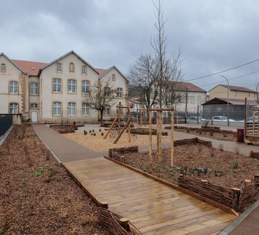 « Le projet a été pensé avec eux et pour eux, expriment Anne-Cécile Jacquot et Chloé Bourrel, paysagistes chargées d’étude au cabinet messin Omnibus, mandaté sur l’opération. Le dessin des cours prend en compte les déplacements des élèves et l’accès pompiers. Les espaces plantés ont été placés sur le chemin de l’eau de pluie », détaillent les professionnelles. La cour du bâtiment périscolaire a été réaménagée également.