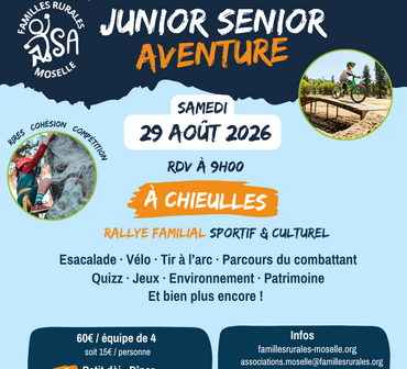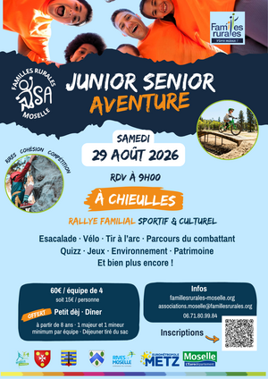 La fédération Familles Rurales de Moselle organise son évènement annuel « Junior Sénior Aventure » le 29 août prochain. Il s’agit d’un rallye familial dont le parcours traverse les communes de Chieulles et Vany, et Charly-Oradour.